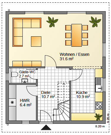 Ein kleines privates Reich auf zweckmäßigem Grundriss, der jeden Quadratmeter clever nutzt. Praktisch. Gemütlich. Und für die schönsten Momente des Tages konzipiert. Mit kuscheliger Sofaecke, komfortabler Badgröße und offener Küche für das gemeinsame Kochen und Essen. Sie frühstücken gern in der Sonne? Dann nichts wie raus in den Garten!