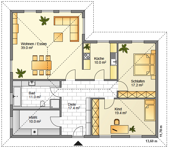 Ausspannen, durchatmen, sich an den schönen Dingen des Lebens erfreuen: Family 124 B sorgt für Wohlfühlambiente mit dem gewissen Etwas. Ein Bungalow wie eine Residenz, mit allem was das Herz begehrt. Viel Platz und viel Licht, behagliche Atmosphäre und eine (blick)geschützte Terrasse. Wohn- und Lebensqualität sind garantiert, ohne Einschränkung.