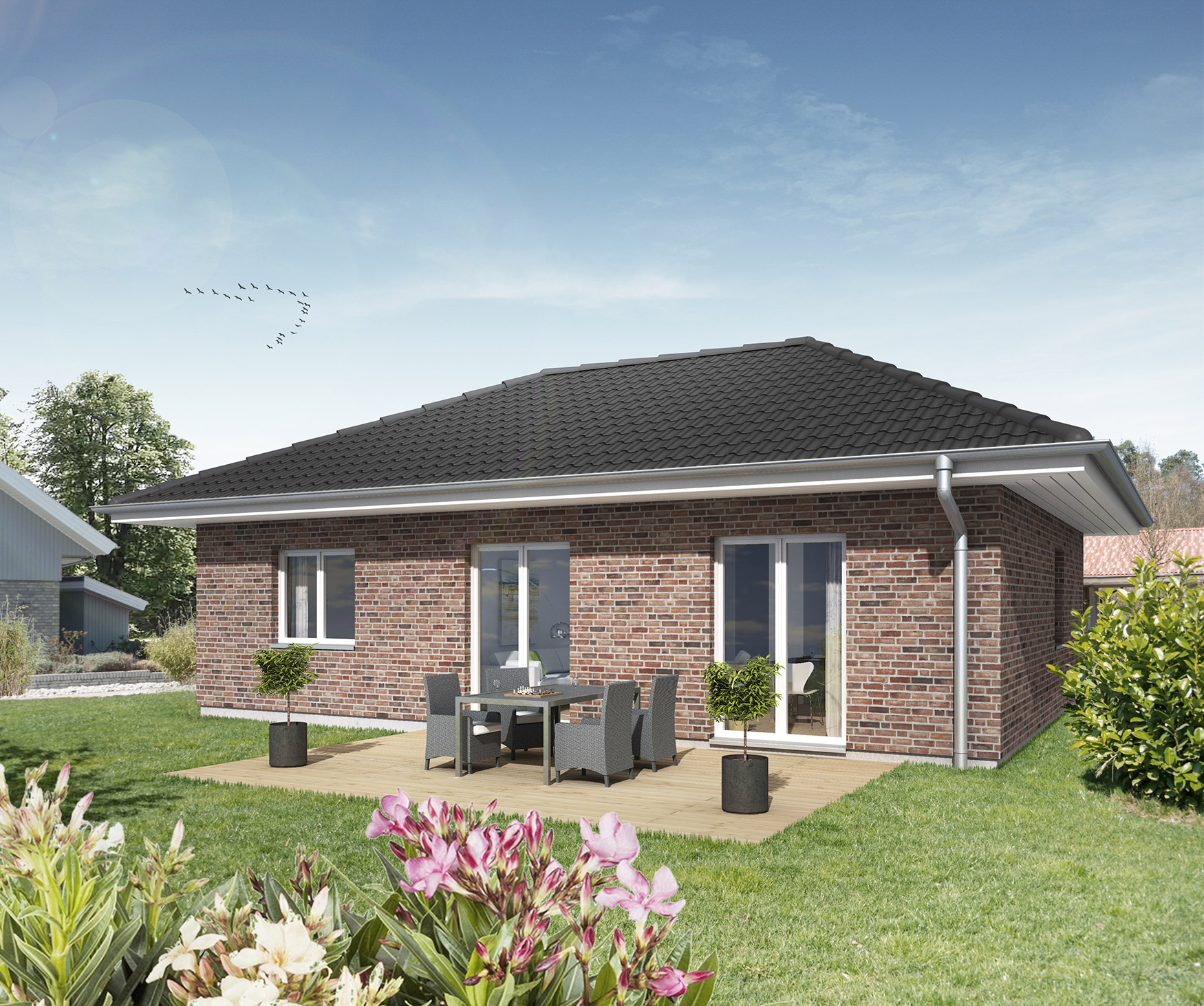 Darin steckt ein Versprechen: Family 80 ist kompakt und alles andere als langweilig. Mit einem Höchstmaß an Charme wartet dieser Bungalow auf Sie. Dieses Kleinod mit 80 Quadratmetern Wohnfläche eröffnet neue Perspektiven und inspiriert zu Abenteuern, die noch erlebt werden wollen. Natürlich barrierefrei, wie es sich für einen schicken Bungalow gehört.